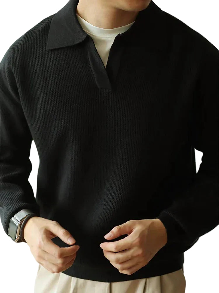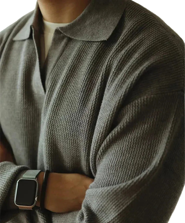 Luca: el suéter tipo polo que une confort, calidez y estilo definido para el hombre moderno.