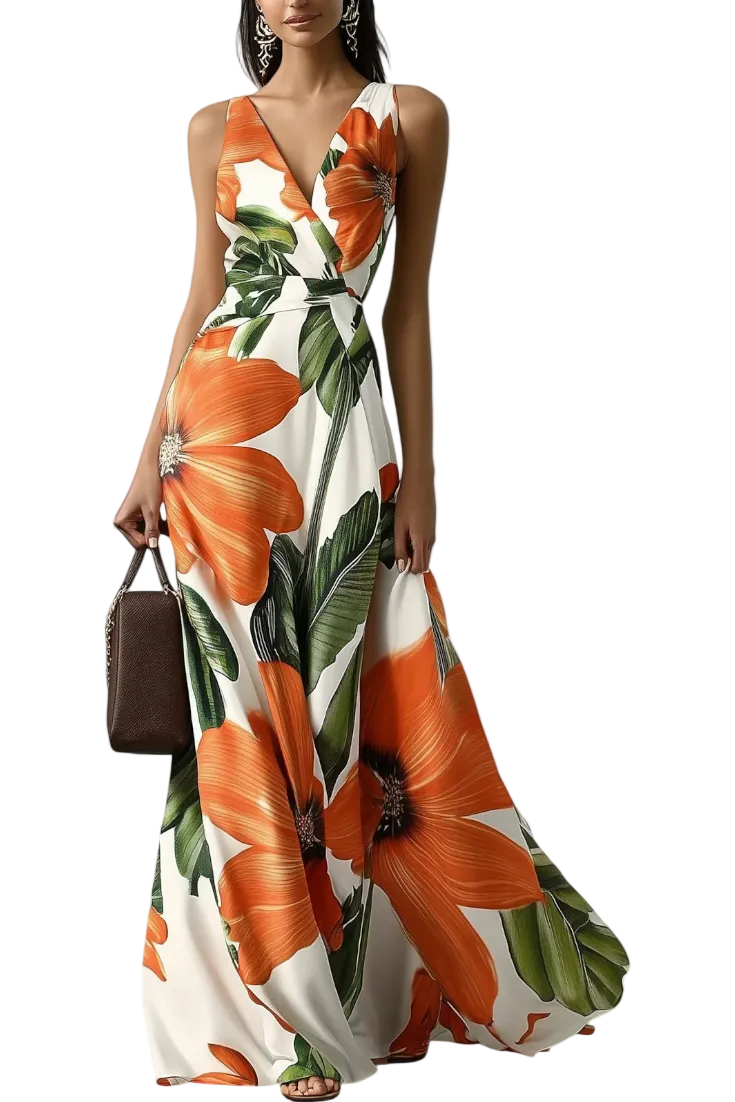 ÁGATA | Vestido maxi floral con escote en V