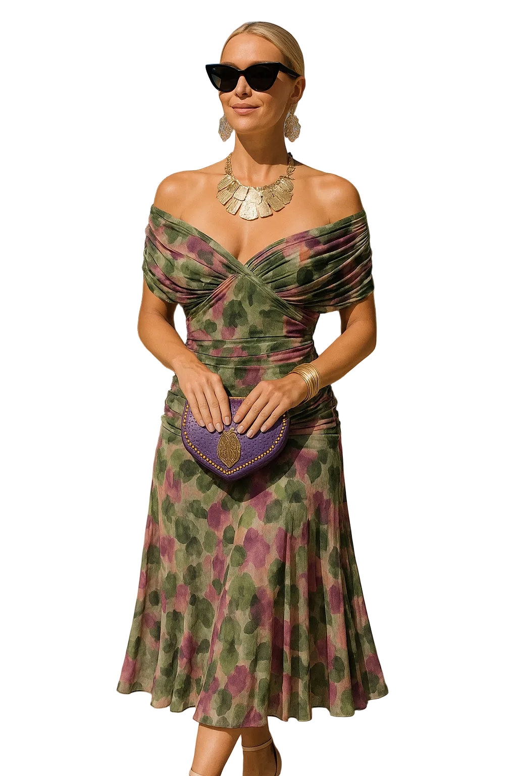 MIRIAM | Vestido midi con escote cruzado y hombros descubiertos