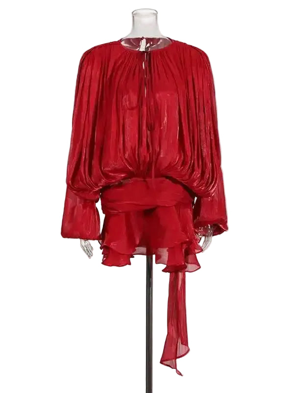 ADELA | Vestido plisado con volantes esculturales
