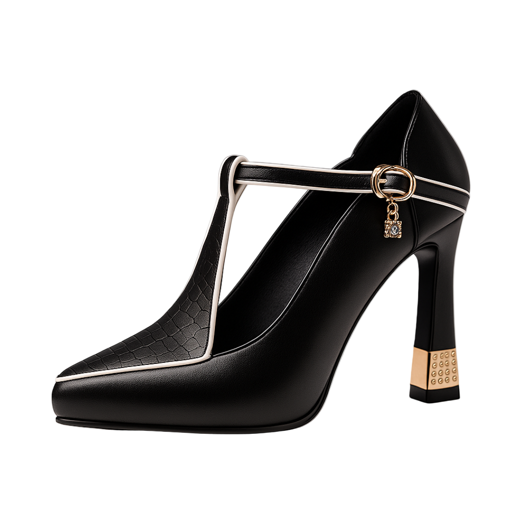 Realza tu estilo con los sofisticados tacones ALIZA, creados para la mujer moderna que busca un equilibrio perfecto entre glamour y comodidad. Fabricados en polipiel de alta calidad, estos zapatos destacan por su diseño en T con un detalle decorativo, su tacón cuadrado estable con acabados brillantes y una puntera fina que aporta un aire refinado. Ideales tanto para eventos especiales como para elevar tu look diario, ALIZA combina una elegancia clásica con un toque actual, asegurándote brillar en cada ocasión.
