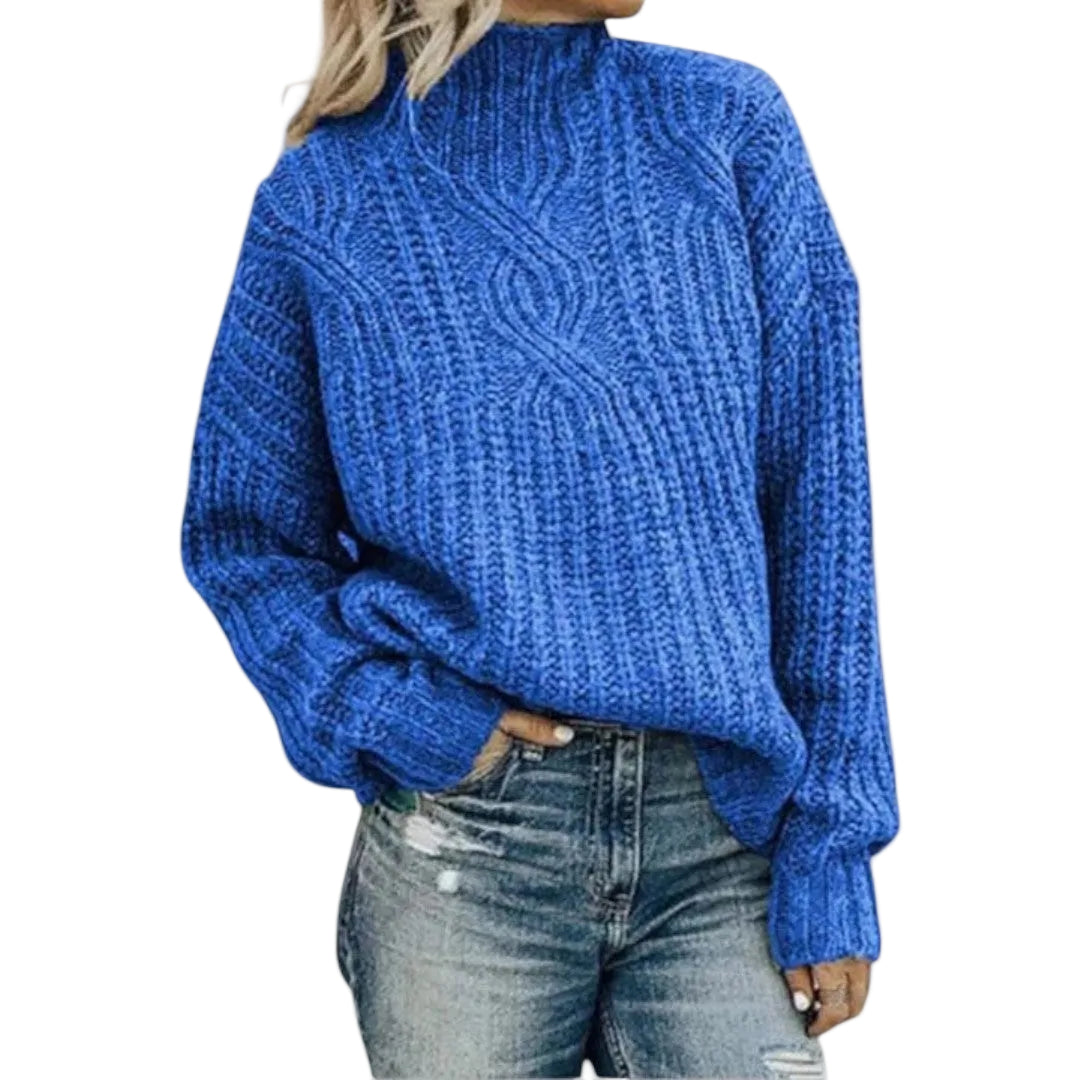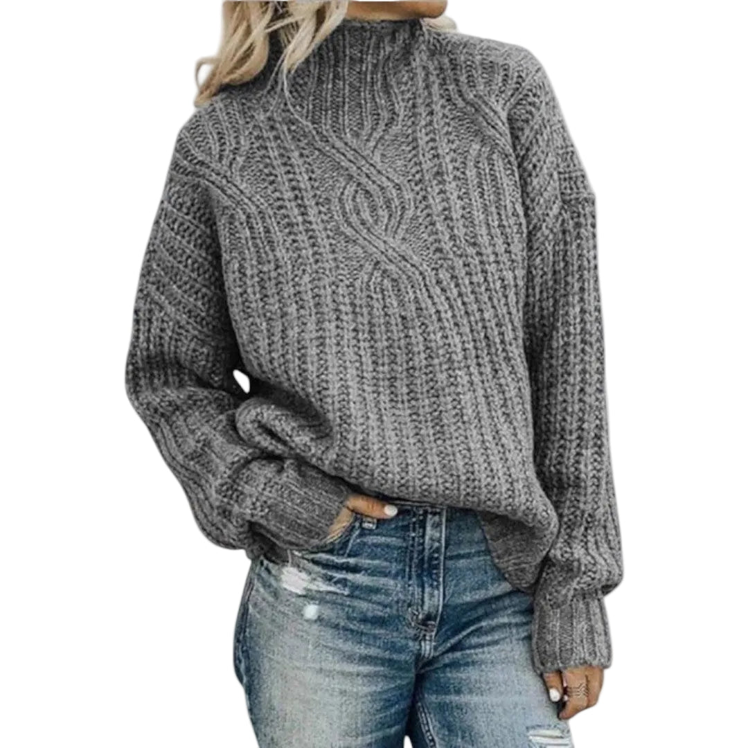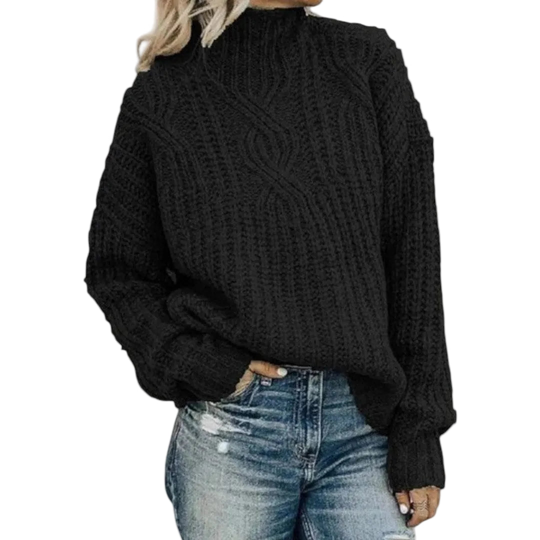 El suéter Elvia es esa prenda acogedora y sofisticada que eleva cualquier look sin esfuerzo. Su punto grueso aporta calidez y textura, mientras que su cuello alto y los delicados detalles trenzados crean una estructura moderna con un encanto atemporal. El corte ligeramente holgado ofrece una caída suave y favorecedora, perfecta para mantener un estilo relajado sin perder elegancia.