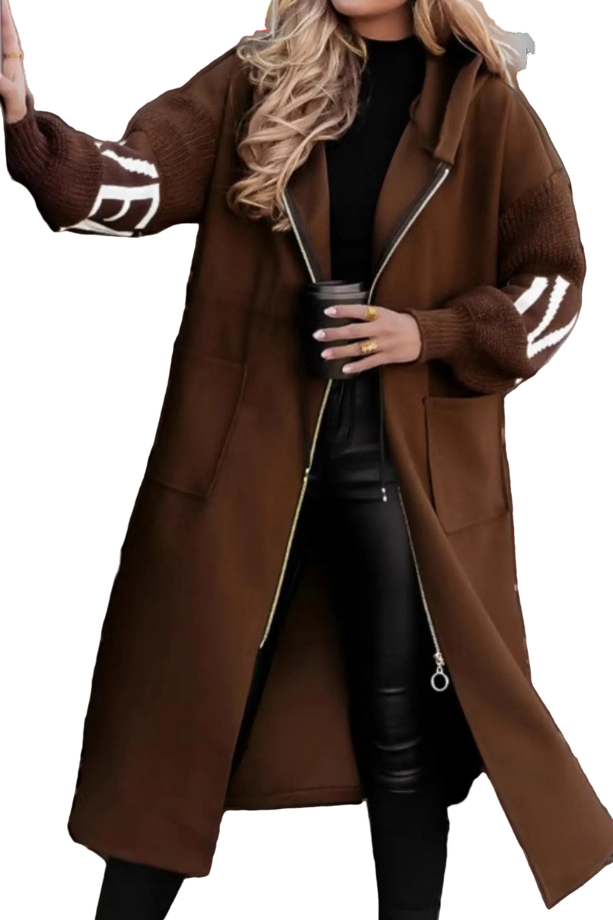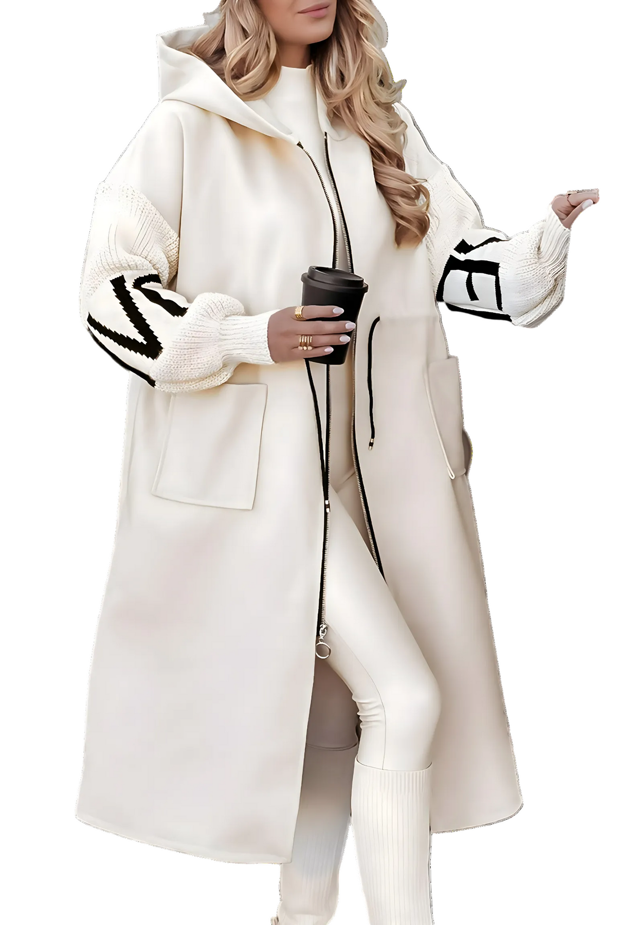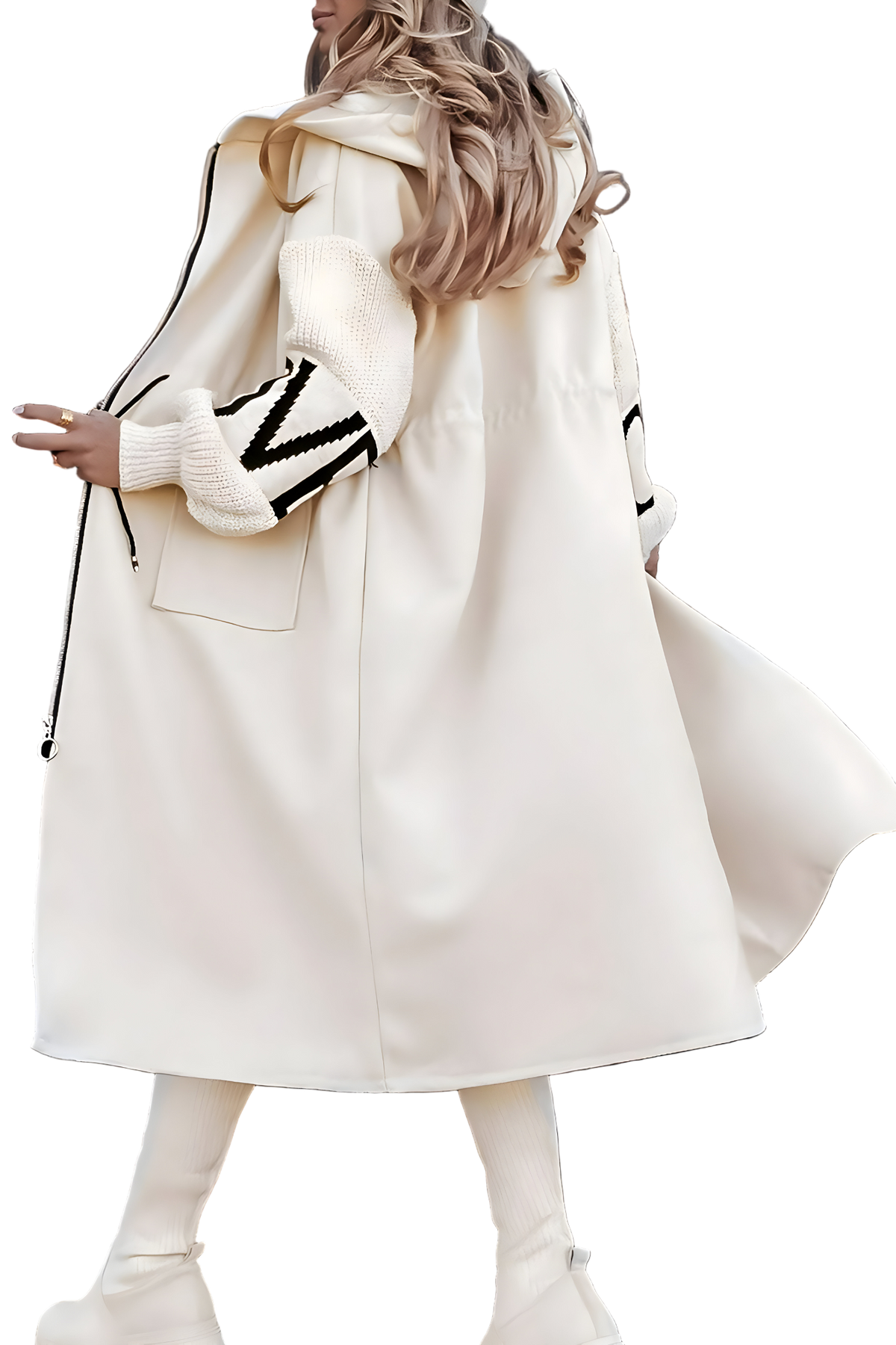 Esta chaqueta larga con capucha para mujer destaca por su original combinación de mangas de punto y detalles de estilo patchwork, creando un equilibrio perfecto entre tendencia y comodidad. Ideal para quienes quieren un look casual con personalidad.